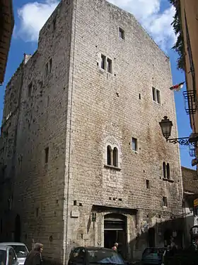 Es obvio, mirando a la forma en que se construyeron las murallas, que la primera torre en el “Trivio” es de estilo románico.[1] A partir de la primera torre todo el edificio fue terminado en un momento posterior, siguiendo el modelo de la casa torre medieval. La casa tenía un porche y el interior era una instalación de usos múltiples, dado que su superficie tiene pequeñas ventanas (para la defensa) y grandes ventanas con parteluz (por la zona de habitación). En una tercera etapa la función de usos múltiples del edificio fue enfatizada. En la planta baja estaban los establos, el primer piso de la casa era la habitación del cardenal y en el tercer piso había una gran Sala de Asambleas, con un techo sostenido por tres grandes arcos apuntados de piedra típicas de la arquitectura gótica.[2] El edificio está completamente rodeado por casas bajas y da una idea de fuerza y belleza enfatizada de la piedra caliza local, finamente pulida. Hay pocas ventanas en la superficie y por lo tanto, al ver el edificio tenemos una idea de fuerza, elegancia y unidad.