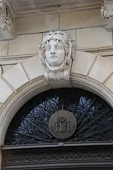 Los dos cuerpos al noreste incluyen la entrada con arco redondeado, mientras que algunos plintos de ventana están decorados con una cabeza de mujer, con la máscara de un león, mientras que las armas reales de España aparecen en el cuerpo del extremo noreste.[1] Estas están coronadas, respectivamente, por ventanas decoradas en frontispicio fundado, sostenidas por cornisas antropomórficas, y servidas por una baranda y una balaustrada con zócalos.[1]