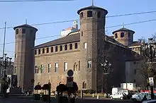 A comienzos del siglo I a. C., el lugar de este palacio estaba ocupado por una puerta en los muros romanos de la que partía el decumanus maximus de Augusta Taurinorum (el antiguo nombre de Turín). Dos de las torres, aunque restauradas, aún testifican este núcleo original. Después de la caída del Imperio Romano de Occidente, la puerta se usó como baluarte fortificado en las defensas de la ciudad.