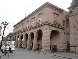 Las antiguas casas reales eran un edificio sencillo de adobe de un solo nivel. Tenía su soportal cinco arcos frente a la plaza. La azotea tenía una tribuna para que los miembros del cabildo pudieran observar juegos de toros y había una cárcel en la parte posterior del edificio. Con la expulsión de los jesuitas de la Monarquía Hispánica de 1767.[4] Esto causó una revuelta entre los habitantes de la ciudad.[5] Lograron invadir las casas reales y destruirlas.[3]