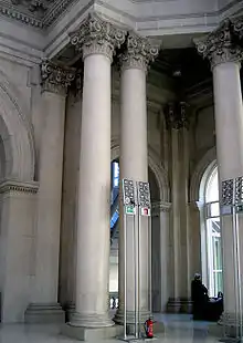Durante el año 1925 los ganadores del concurso realizaron el proyecto ejecutivo del anteproyecto presentado, uno de los temas más importantes fue el conseguir a través de unos procedimientos la garantía de la elaboración de la obra en un tiempo determinado. Estos mecanismos se basaron en la racionalización de los elementos arquitectónicos en busca de una repetición que hiciera ganar en su rapidez de ejecución de la obra. Tres materiales tenían un gran papel en su construcción, el hormigón, la piedra artificial y el hierro. Según explicaron los mismos arquitectos la piedra artificial que se utilizó se fabricaba a pie de obra y se realizó en forma de T para tener una buena adherencia unas piezas con otras en los muros donde se aplicaba, normalmente todos los muros y forjados estuvieron hechos con hormigón y los encofrados perdidos se realizaron con piedra artificial que ya incorporaba la decoración que tenía que quedarse a la vista. En los techos planos se realizó con un sistema que consistía en hormigón armado con casetones que formaban la decoración definitiva, así en su interior se incluían las armaduras de hierro se llenaba con hormigón y formaba por un lado el suelo de una planta y por el otro la base de yeso, con la decoración incluida, para el techo de la otra planta. Para el vestíbulo, las escaleras y el sótano se utilizó la llamada bóveda catalana con la utilización de ladrillos colocados en plano. Entre las piezas de piedra artificial realizadas a pie de obra se encontraban las dieciséis columnas que sostienen la cúpula central, de un metro de diámetro con diez de altura, vacías en su interior ya que se colocaban como funda sobre la estructura de hierro y hormigón, cada columna se hizo de una sola pieza. La estructura del Gran Salón de 46 x 74 metros y de 30 de altura se realizó con un sistema de cerchas o cimbras metálicas,[8] en forma de arco y apoyadas sobre piezas de pies de hierro dispuestas alrededor de todo el perímetro de la sala, las cuales fueron después cubiertas con piedra artificial como si de columnas de estilo corintio se trataran.[5]: 21