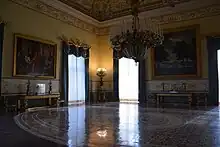 Entre 1836 y 1837 se decoraron las nuevas salas destinadas a los aposentos regios en estilo neoclásico.[8][18] En particular, destacaban los dos grandes salones de representación situados en el centro de las fachadas principales: uno de ellos (Sala 42) se destinó a bailes y recepciones, el otro (Salas 12-13-14) fue enriquecido con cuadros de la Casa de Borbón-Dos Sicilias a modo de panteón familiar.[20] Además, las salas se embellecieron con obras compradas por los soberanos o enviadas por jóvenes artistas napolitanos que se habían ido a estudiar a Roma con una contribución real, realizadas por ellos mismos para mostrar sus progresos.[18]