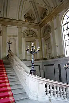 Cabe destacar la Sala delle Cariatidi (Sala de las Cariátides) en la planta noble del palacio, que ocupa el lugar del antiguo teatro, quemado en 1776, y es el único ambiente que sobrevivió al duro bombardeo de la ciudad en 1943, durante el cual se perdieron los interiores neoclásicos.