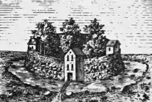Pierre derribó partes del castillo y comenzó a construir lo que se convertiría en el actual palacio.[1] La edificación original sobre la isla, creada por el estanque/foso artificial, fue construida a partir de 1585 y se emplearon parte de las ruinas del castillo de Arnesvelde, a pocos kilómetros al sur. Incluso en ese momento, el foso solo servía para propósitos artísticos más que defensivos.[2]: 6