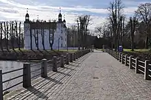 - Esta obra contiene una traducción derivada de «Château d'Ahrensburg» de Wikipedia en francés, publicada por sus editores bajo la Licencia de documentación libre de GNU y la Licencia Creative Commons Atribución-CompartirIgual 4.0 Internacional.