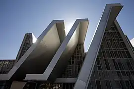 De estructura horizontal y 167 m de longitud, el Palacio de Congresos se envuelve de una cubierta sinuosa con lucernarios que permiten el paso de los rayos solares para iluminar vestíbulos y salas comunes. Asimismo, la estancias reciben luz natural del exterior por las paredes traslúcidas de las fachadas, que alternan frentes acristalados y celosías metálicas.