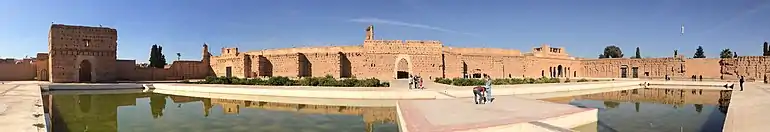 El Palacio El Badi de Marrakech fue edificado a finales del siglo XVI por el sultán Saadí Ahmed al-Mansur para celebrar la victoria sobre el ejército portugués en 1578 en la batalla conocida con el nombre de la Batalla de los Tres Reyes. Según los cronistas de la época era la maravilla del mundo musulmán. La construcción de este fastuoso palacio duró de 1578 a 1603 y se utilizaron los materiales más ricos para decorar las 360 habitaciones del complejo principesco. Hoy, no queda más que una inmensa explanada cava de jardines, plantada con naranjos y rodeada de altos muros. En efecto, en 1696, el sultán alauí Moulay Ismail tomó sus riquezas para construir la ciudad imperial de Meknes. Los planos de esta joya del arte islámico estuvo influenciado por los de la Alhambra de Granada.