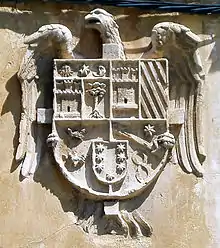 También durante aquella fase de reformas se pudo desmantelar la portada del palacio del siglo XVI para conservar únicamente el escudo de armas que todavía se expone entre dos huecos de la planta baja.