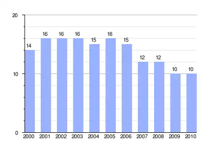 Población de derecho (2000-2010) según los censos de población del INE a 1 de enero de cada año.[1] |