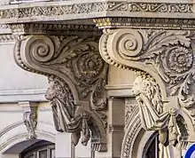 El edificio fue construido en el estilo de arquitectura de Renacimiento francés por el arquitecto Pavel Stern. La fachada principal del edificio da a la costa occidental del Mar Caspio.[4]