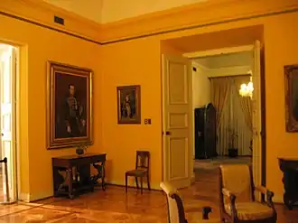 Los muebles y otros elementos de decoración son de estilo Imperio, característico del período de 1800 a 1820, cuando concluyeron las obras del edificio. Dos cómodas francesas, de caoba y bronce, están decoradas en su frente con cuernos de la abundancia. Se atribuyen al mueblista Jacob Desmalter y son similares a un amoblado que este realizó para el palacio de Fontainebleau.