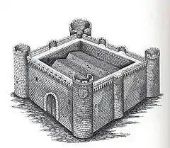 Poseyó un escudo de Armas del Conde de Benavente en uno de los cubos.