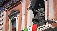 En 1782 se puso en marcha el plan de renovación de la fachada del palacio, con motivo de la inauguración de la gran estatua del papa Pío VI. El pontífice, nombrado siete años antes, era hijo predilecto de la ciudad de Cesena. Nacido en el seno de una de las familias más influyentes de la ciudad y siendo alumni del colegio jesuita local, se aprovechó su paso por la ciudad a su regreso de un viaje a Viena a principios de 1782 para homenajearle con el plan de reformas y la proyección de la estatua que lo conmemoraría. Para ello se encomendó al arquitecto pontificio de Cesena, Cosimo Morelli de Imola, para que dirigiera las obras. Los trabajos duraron cinco años, siendo inaugurada la nueva fachada en 1787. El nicho de la estatua se quedó sin embargo vacío hasta 1792, año en que se inauguró la estatua en una solemne ceremonia.[2]