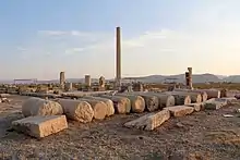 Al sur del área palaciega está la tumba de Ciro. Está compuesta por dos partes: un basamento o zócalo alto formado por seis escalones de piedra, y una cella, construcción de forma modesta con techo alto de doble vertiente.[3]