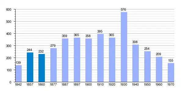 | Gráfica de evolución demográfica de Palacios de Salvatierra[4] entre 1842 y 1970 |