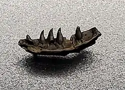 ![]() Mandíbula parcial con dientes de Palaeosaniwa sp., espécimen ROM 75883.1 | ||