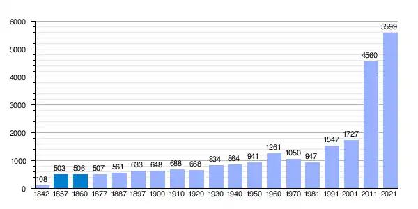 | Gráfica de evolución demográfica de Palazuelos de Eresma[8] entre 1842 y 2021 |