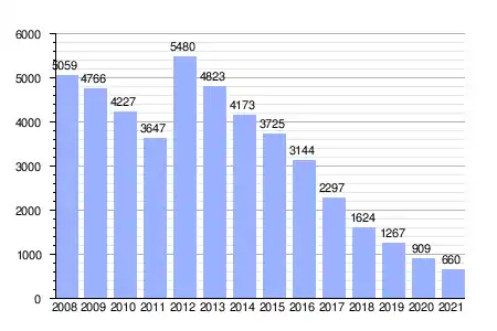 | Gráfica de evolución de la deuda viva del ayuntamiento entre 2008 y 2021 |