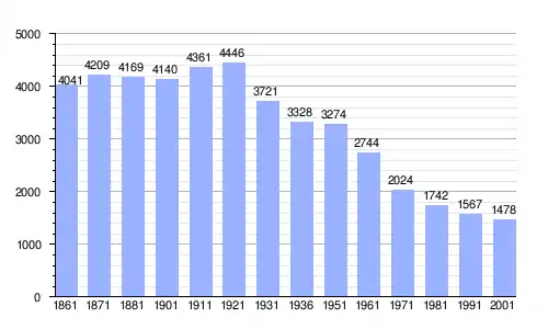 Gráfica de evolución demográfica de Palena entre 1861 y 2001