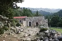 Entre sus edificios, en su mayoría en ruinas, se conservan dos iglesias construidas en el siglo XI, la Iglesia del Arcángel San Miguel (Asómati Taxiárches Gavriíl ke Miachaíl) y la monasterio de Santa María de la Presentación (Panagía ton Kastrianón), del siglo XI, fue fundado por el monje fundador Cristódulo Latrinos de Patmos.