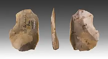 El Paleolítico medio es el segundo de los periodos en que está dividido el Paleolítico, la etapa inicial de la Edad de Piedra. Se caracteriza por el predominio de una tradición lítica denominada musteriense, que utiliza la técnica de talla llamada método Levallois o modo técnico 3,[1] que consiste en obtener una o varias lascas de forma predeterminada, a partir de una preparación particular del núcleo. Es un periodo mucho menos extenso que el anterior (el Paleolítico inferior) y abarca aproximadamente entre los años 325 000[2] -300 000 antes del presente (AP) y 40 000-30 000 AP.[3]