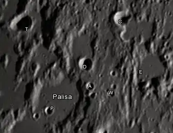 Por convención estos elementos son identificados en los mapas lunares poniendo la letra en el lado del punto medio del cráter que está más cercano a Palisa.