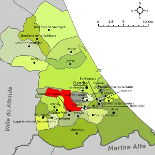 ![]() Localización en la comarca de la Safor