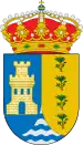 El escudo, partido y entado en punta, representa en el primer cuartel un castillo (aludiendo a la torre de defensa integrada en el Cortijo de Troya) en oro sobre azur, en el segundo cuatro plantas de palmito (que dan su nombre al municipio) en sinople sobre oro. En el tercer cuartel, ondas en azur y plata, representando por igual a la laguna de Zarracatín y al pantano Torre del Águila. Al timbre, corona real cerrada.[2]