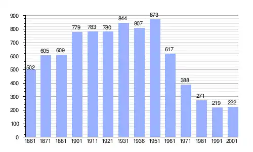 | Gráfica de evolución demográfica de Palmiano entre 1861 y 2001 |