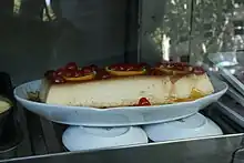 La elaboración se compone de huevos batidos y rebajados con leche hasta formar un líquido espeso. Este líquido se suele aromatizar a veces con canela, raspaduras de limón, anís, etc. Se endulza a gusto. Sobre el molde se echa azúcar para hacer caramelo, luego dependiendo de los gustos, bien sea miga de pan o bizcochos diversos, magdalenas e incluso pan de centeno, se echa desmenuzado sobre el caramelo y después se echa encima el batido de huevos y leche[2] etc. Todo junto se hornea en un molde hasta que queda «cuajado» el huevo. El resultado final dependerá de la forma del molde. Se suele decorar con trazas de nata o frutas en almíbar diversas. Es costumbre que se sirva como postre frío.