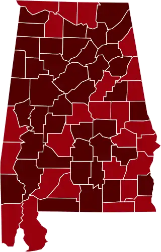 El 24 de marzo, Birmingham, la ciudad más gran del estado, emitió una orden de quedarse en casa (como toque de queda de 24 horas) vigente hasta el 3 de abril.[13] La primera muerte en el estado se informó en el condado de Jackson.[14][15] El alcalde de la ciudad de Tuscaloosa, Walt Maddox, emitió un toque de queda en toda la ciudad que duró desde las 10:00 p. m. hasta las 5:00 a. m. todos los días, efectivo del 27 de marzo al 3 de abril.[16]