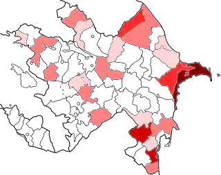 La pandemia de COVID-19 en Azerbaiyán se extendió principalmente en el sur del país y en la capital Bakú. El primer caso fue confirmado el 28 de febrero de 2020, mientras que el primer fallecimiento ocurrió el 12 de marzo en la ciudad de Bakú. El 22 de marzo, se confirmó la primera transmisión doméstica.[36] El 31 de marzo, Azerbaiyán declaró la cuarentena a nivel nacional. Se requiere que las personas permanezcan en casas y apartamentos privados, lugares de residencia permanentes o temporales hasta el 20 de abril.[37]