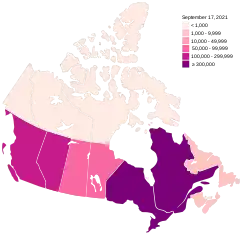 Hasta el 24 de septiembre de 2020, Canadá tenía 147,753 casos confirmados, con 127,788 recuperaciones y 9,243 muertes.[71]