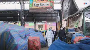 ![]() El mercado San Roque de Quito clausurado durante la cuarentena nacional, 13 de abril de 2020. | ||