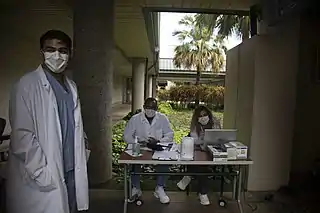 ![]() Personal sanitario de la Armada de los Estados Unidos realiza pruebas para COVID-19 en Kaneohe, 23 de marzo. | ||