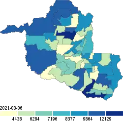 El primer caso de la pandemia de enfermedad por coronavirus en Rondonia, estado de Brasil, inició el 20 de marzo de 2020. Hay 36.148 casos confirmados y 830 fallecidos.[1]