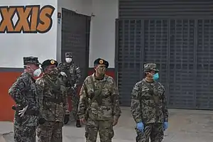 ![]() Miembros del Ejército peruano durante la pandemia en Aguas Verdes. | ||