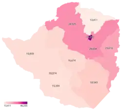 ![]() Casos acumulados en Zimbabue por provincia al 30 de enero de 2022 | ||
