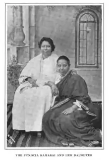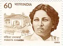 Pandita Ramabai Sarasvati (India, 23 de abril de 1858 - 5 de abril de 1922) escritora y activista india por los derechos y la educación de las mujeres, pionera en la educación y emancipación de las mujeres en la India y reformadora social. Fue la primera mujer en recibir los títulos de Pandita como erudita en sánscrito y Sarasvati después de ser examinada por la facultad de la Universidad de Calcuta.[1] Fue una de las diez mujeres delegadas de la sesión del Congreso de 1889.[2][3] A fines de la década de 1890, fundó la Misión Mukti en la aldea de Kedgaon, a cuarenta millas al este de la ciudad de Pune.[4][5] Posteriormente, la misión se denominó Misión Pandita Ramabai Mukti.