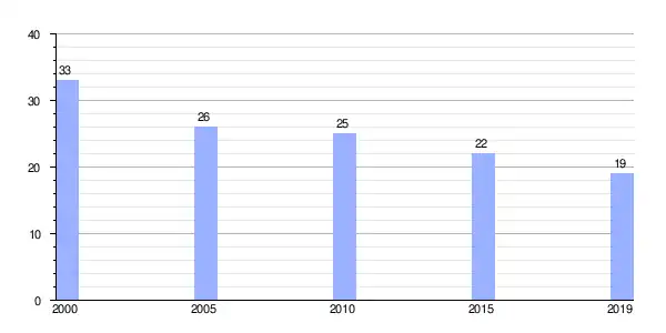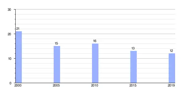 | Gráfica de evolución demográfica de Pando (aldea) entre 2000 y 2019 |