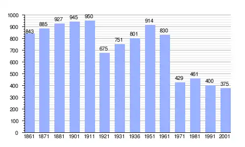 | Gráfica de evolución demográfica de Panettieri entre 1861 y 2001 |