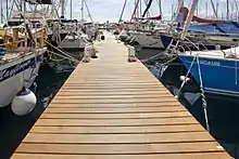 Se llama pantalán al muelle estrecho o pasarela flotante que se adentra en el mar y se utiliza como embarcadero para barcos de tonelaje pequeño.[1]