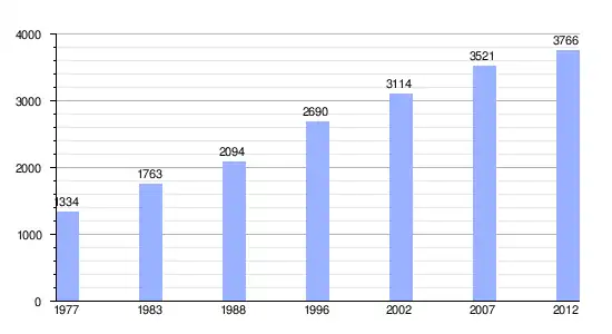 Gráfica de evolución demográfica de Papenoo entre 1977 y 2012
