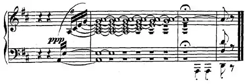 Los acordes rotos de mi bemol mayor brillantemente acelerados en fortissimo son seguidos por un pasaje con una melodía en zigzag (primero mezzoforte, luego pianissimo). Un da capo exige la repetición completa de este corto pasaje. Sin dar ninguna razón, Mayeda describe esta pieza como “el contrarretrato contrastado de Vult, su entrada tempestuosa y animada con lograda elegancia.[5] La música corresponde muy vívidamente al pasaje de texto marcado en la copia personal de la novela. Esto se refiere al salón de baile al que entra Walt después de deambular por otras habitaciones.