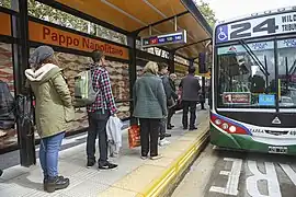 Pasajeros deteniendo un colectivo.