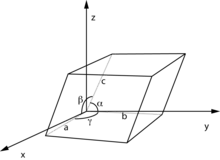 Un parámetro de red es una distancia o un ángulo que define geométricamente a la celda unitaria con respecto a su estructura cristalina. La celda unitaria queda definida por seis parámetros: la longitud de tres aristas a, b y c; y tres ángulos interaxiales α, β y γ.[1] Los parámetros de red pueden ser medidos mediante difracción por rayos X.