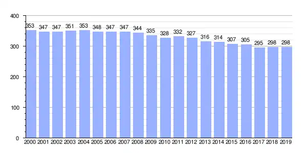 | Gráfica de evolución demográfica de Parada entre 2000 y 2019 |