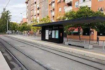 Se encuentra ubicada en el bulevar central de la avenida Periodista Rodolfo de Salazar, desde donde se puede acceder. En esta parada se detienen los tranvías de la línea 2. Dispone de dos andenes y dos vías.[1]