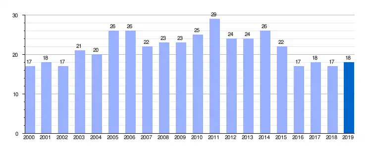 | Gráfica de evolución demográfica de Paradiña entre 2000 y 2019 |