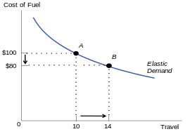 Los economistas han observado que los consumidores presentan una tendencia a viajar más cuando sus carros son más eficientes en el consumo de combustible, generando un «rebote» en la demanda de combustibles.[14] Un aumento en la eficiencia en la que un recurso es consumido (p. ej., combustible) genera una reducción en su costo en relación con lo que se puede lograr con él (p. ej., viajes). En general, según la ley de la demanda, una reducción del precio de un bien o servicio incrementará la cantidad que se demanda; por ello, con un menor costo de viaje, los consumidores viajarán más veces o más lejos, aumentando la demanda de combustible. Este incremento en la demanda se conoce como «efecto rebote» y puede o no ser suficientemente grande como para compensar la caída original en el uso de combustible debida a la mejora técnica. Así, el efecto Jevons ocurre cuando el rebote es superior al 100%, excediento las ganancias de eficiencia originales.[6]